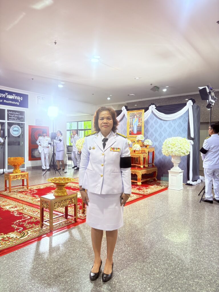 วันอาทิตย์ ที่ ๒๖ ตุลาคม ๒๕๖๘ เวลา ๑๑.๐๐ น. ผู้อำนวยการสำนักตรวจเงินแผ่นดินจังหวัดพัทลุง มอบหมายให้ นางชฐพร ทองเกิด ผู้อำนวยการกลุ่ม เข้าร่วมพิธีถวายน้ำสรงพระบรมศพ เบื้องหน้าพระฉายาลักษณ์สมเด็จพระนางเจ้าสิริกิติ์ พระบรมราชินีนาถ พระบรมราชชนนีพันปีหลวง ณ ห้องโถง ชั้น ๑ ศาลากลางจังหวัดพัทลุ